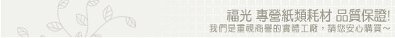 敝公司成立於民國78年,迄今已在專業上深研多年,『福光有限公司』始終站在紙品加工端為大眾服務,如今更挺身至第一線為您提供物超所值的紙品耗材通路。